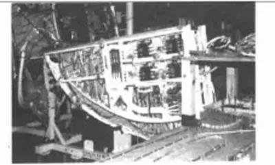 無線電設備架是全機無線電設備的安裝架,其基礎結構是3個鋁合金結構支架,其上安裝15個大型復雜電纜組件(電纜圖號約60個),包括4根特大型電纜和4個站位板(相當于4個大型的接線盒),有大量的接線模塊來實現這15個電纜組件間的交連。電纜的另一端敷設在機頭內,與駕駛艙內的各種控制盒及儀表板的電纜相連接。無線電設備架是飛機的關鍵部件之一,總重量約326kg。