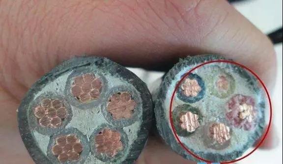 第一招是打銅導體的主意,銅導體占了電線成本的80%,不良廠商一是降低銅材質量。采用價格低得多的雜質銅、回收銅,甚至土法煉銅,銅含量極不穩定,導致銅導體電阻率大增。二是減少銅材用量。降低銅芯實際截面積,這兩種做法的直接后果是電線在使用過程中過熱,損壞絕緣層塑料,造成短路而引起火災。